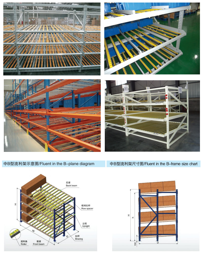 流利式貨架廣泛應用于制造業(yè),商業(yè),配送中心,裝配車間以及出貨頻率較高的倉庫流利式貨架:采用輥輪鋁合金,鈑金等流利條,利用臺架自重實現(xiàn)先進先出,存儲方便,適用于裝配線兩側配送中心等場所。