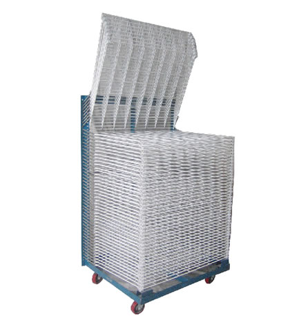 千層架,又叫絲印千層架、乾燥架、千層車、晾曬架、晾紙架、網(wǎng)架、層架臺(tái)車。適用于印刷、上膠、噴漆、上色,濺鍍後的晾乾置放器材;顒(dòng)式多層網(wǎng)格設(shè)計(jì),置放空間大,操作方便,節(jié)省車間、庫房面積,并可適用於所放產(chǎn)品的常溫晾乾和進(jìn)焗爐高溫烘烤。